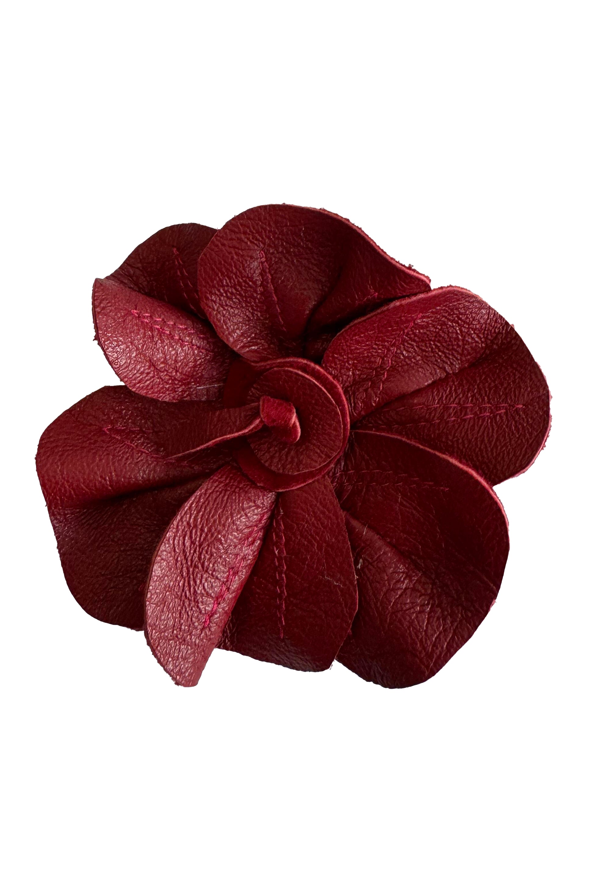 Handmade leather flower brooch with magnetic backing. Each piece is individually sculpted from reclaimed leather using zero-waste techniques, allowing the material to dictate the natural shape. No two are alike. The magnet attaches securely without damaging clothing and can be worn on jackets, coats, scarves, or bags. Crafted in studio, one at a time.