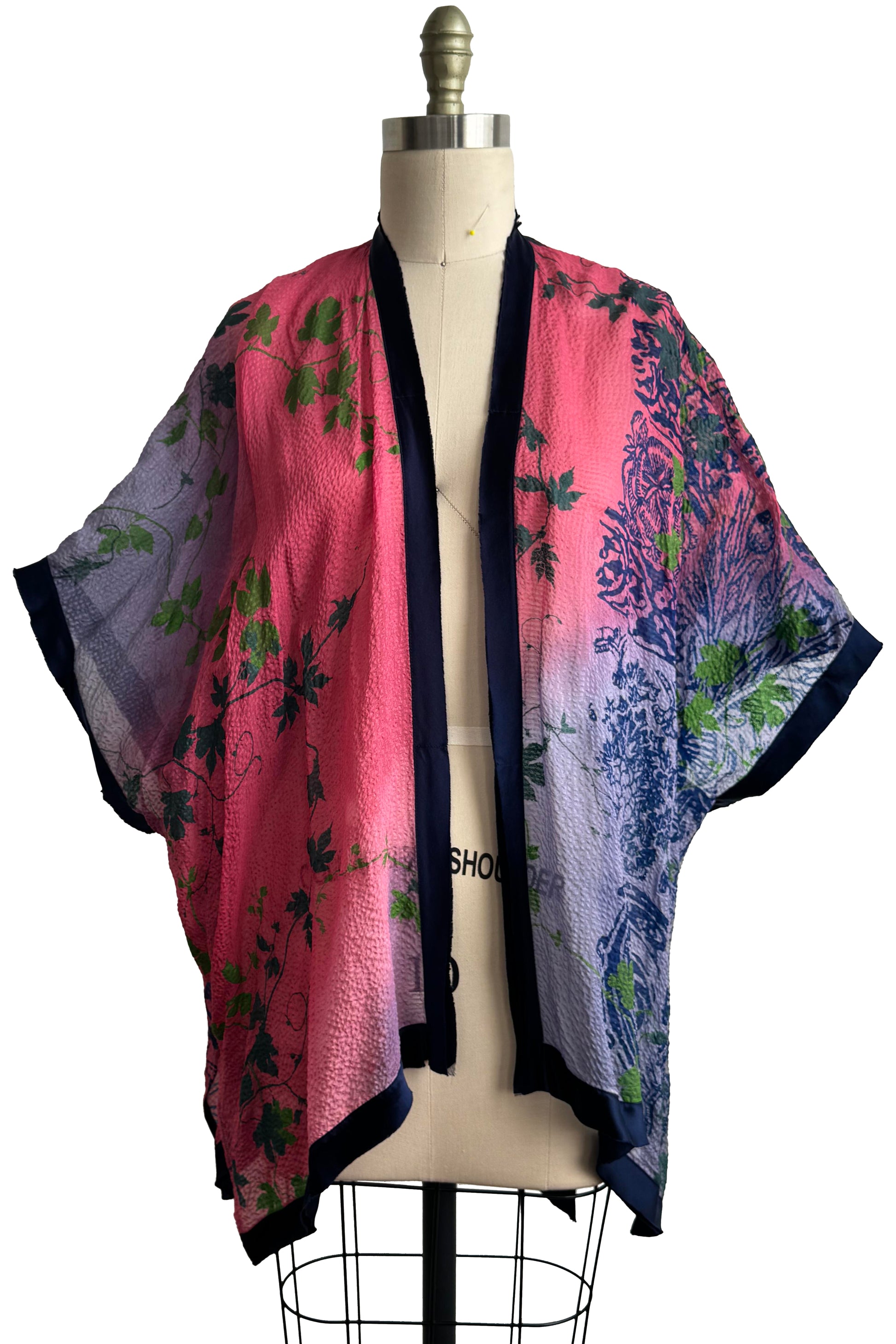 Lucianne Drape Seersucker Silk - Tile & Vine Print - Pink & Blue