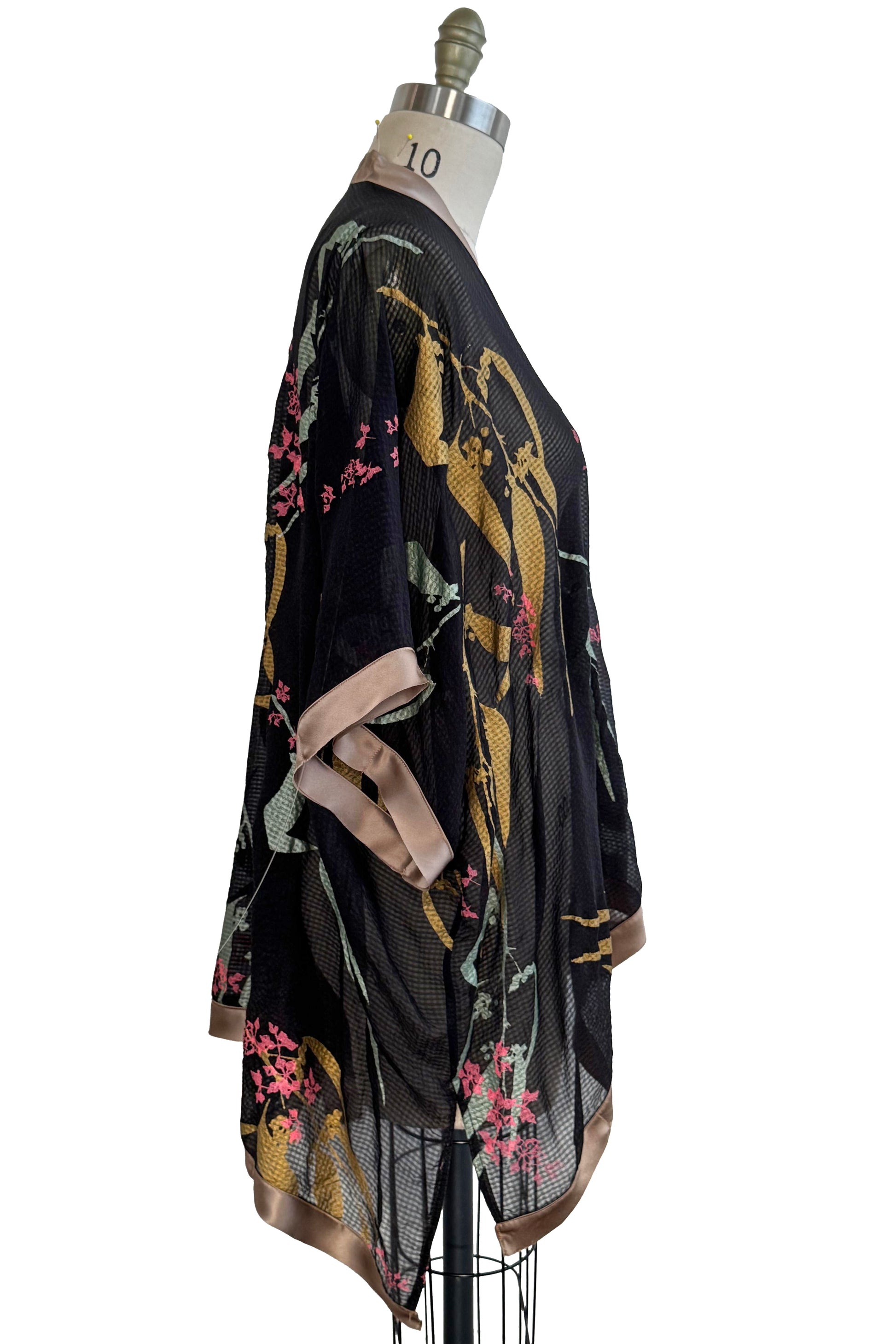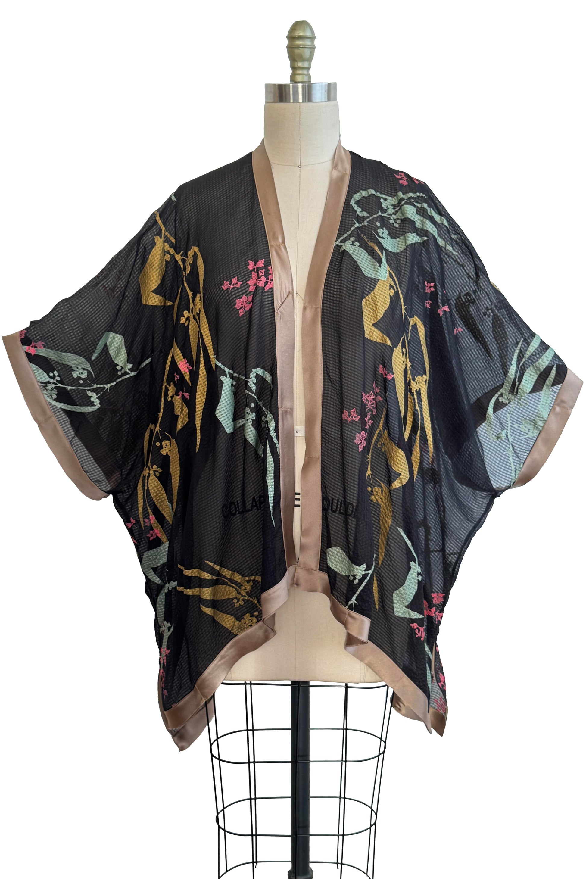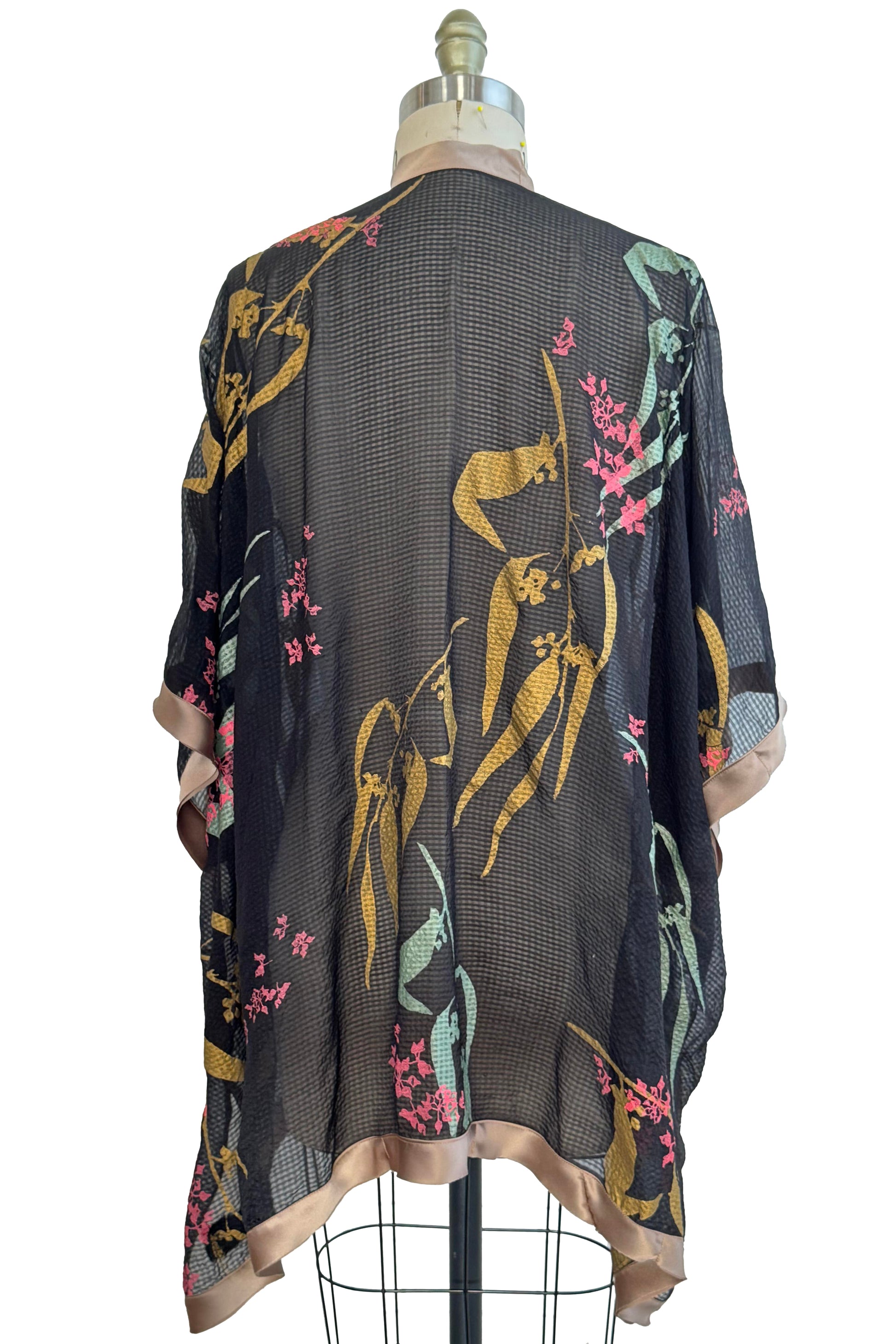 Lucianne Drape Seersucker Silk - Botanical Eucalyptus Print - Black