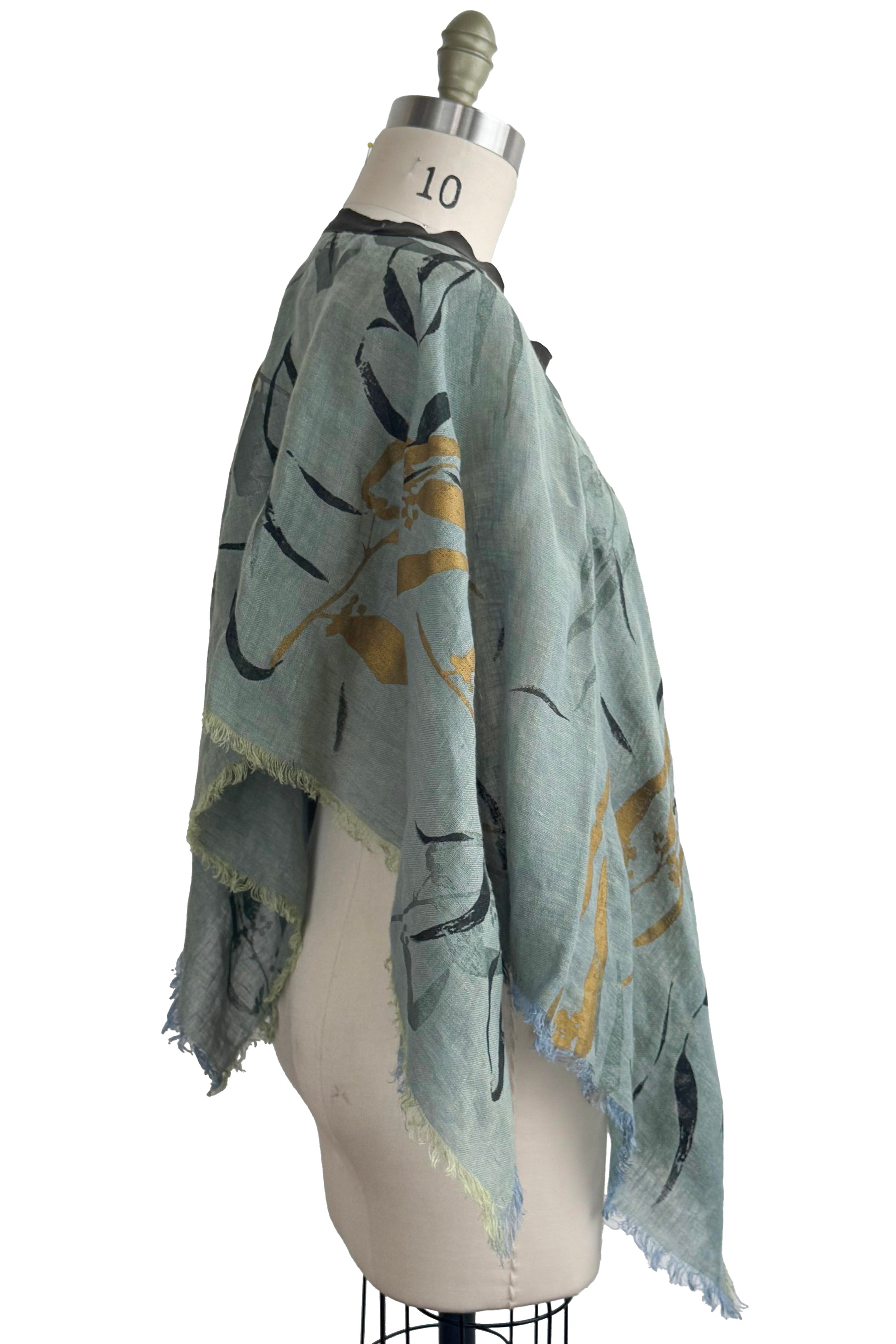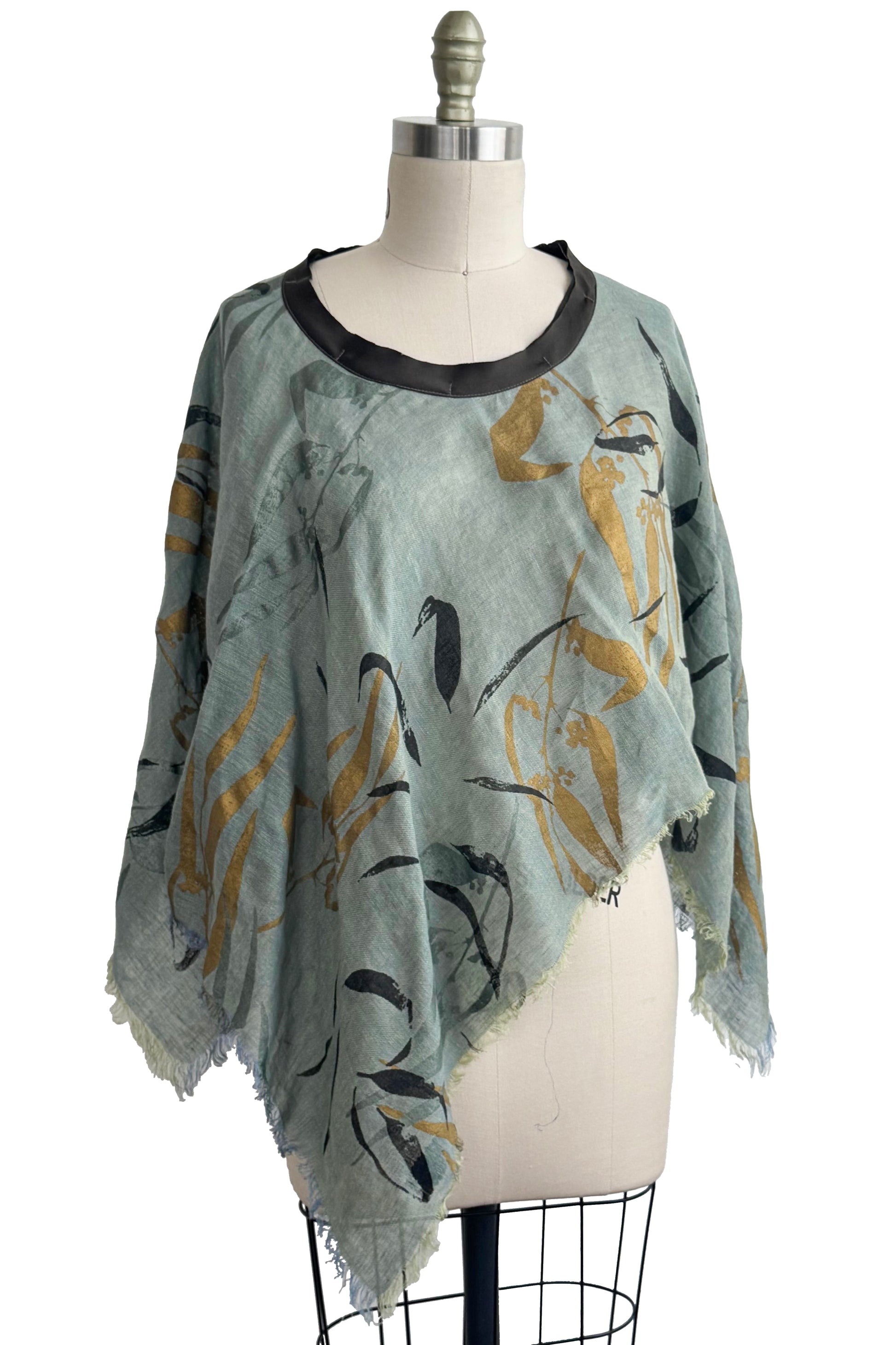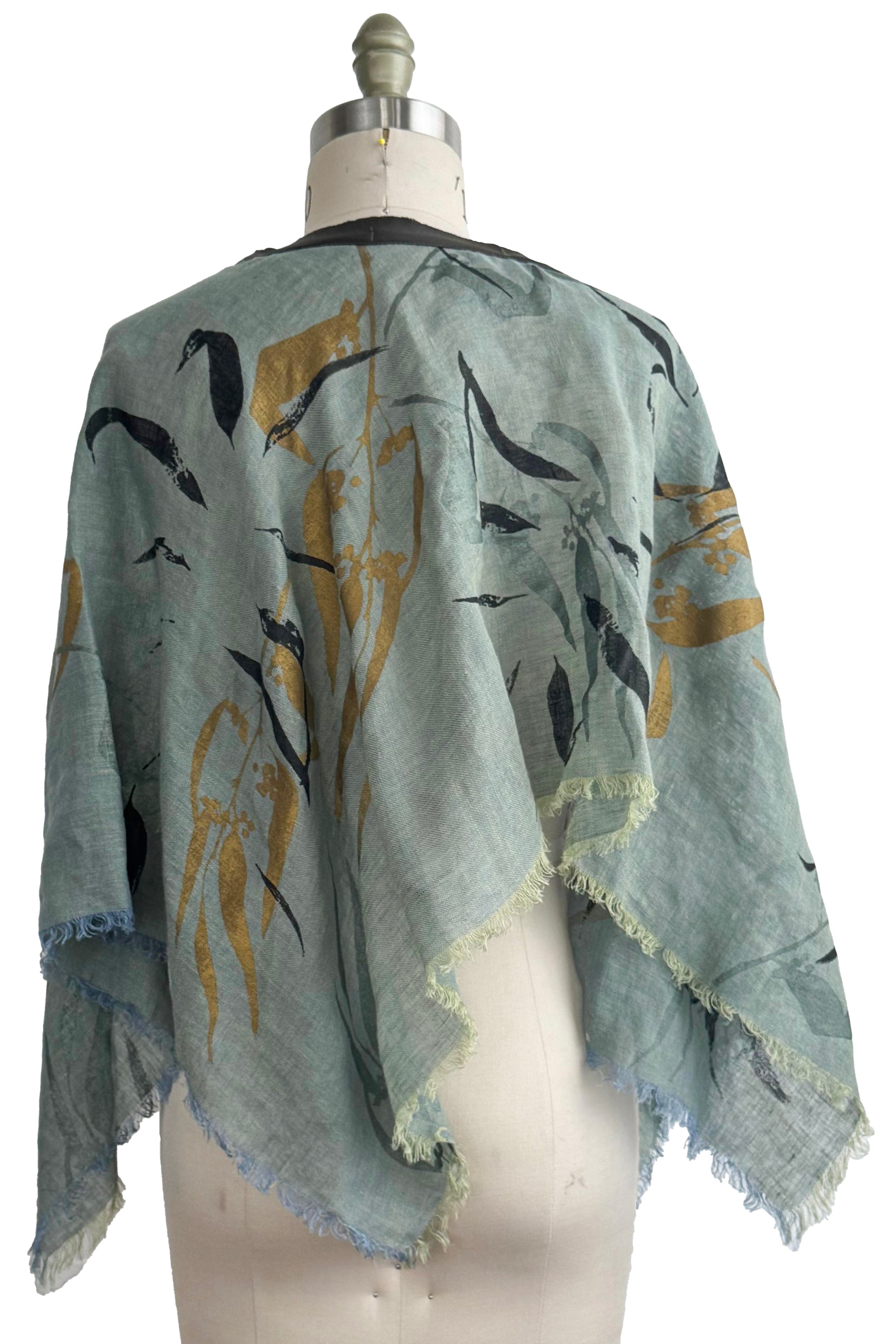 Open Weave Linen Poncho - Botanical Eucalyptus Print - Sage