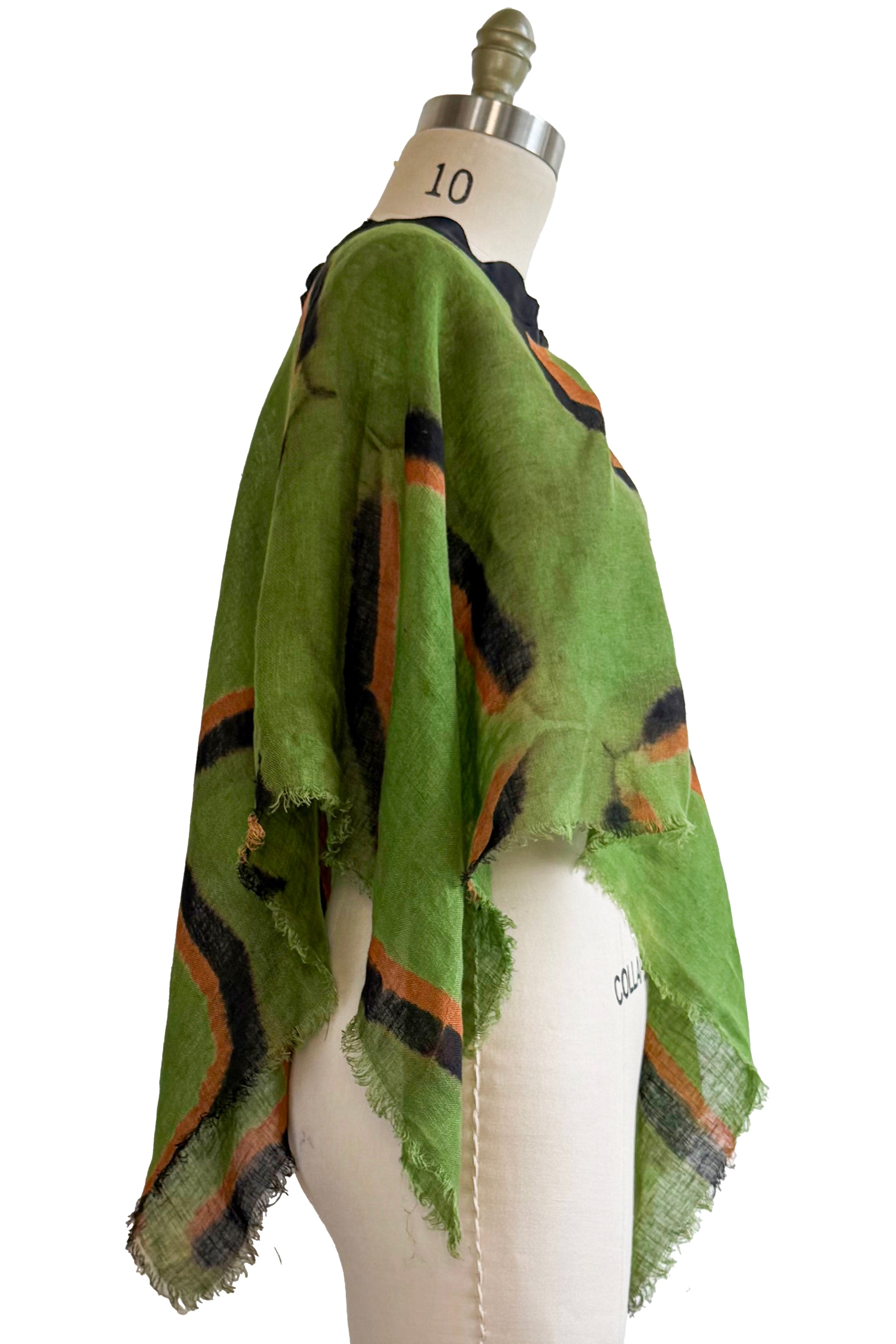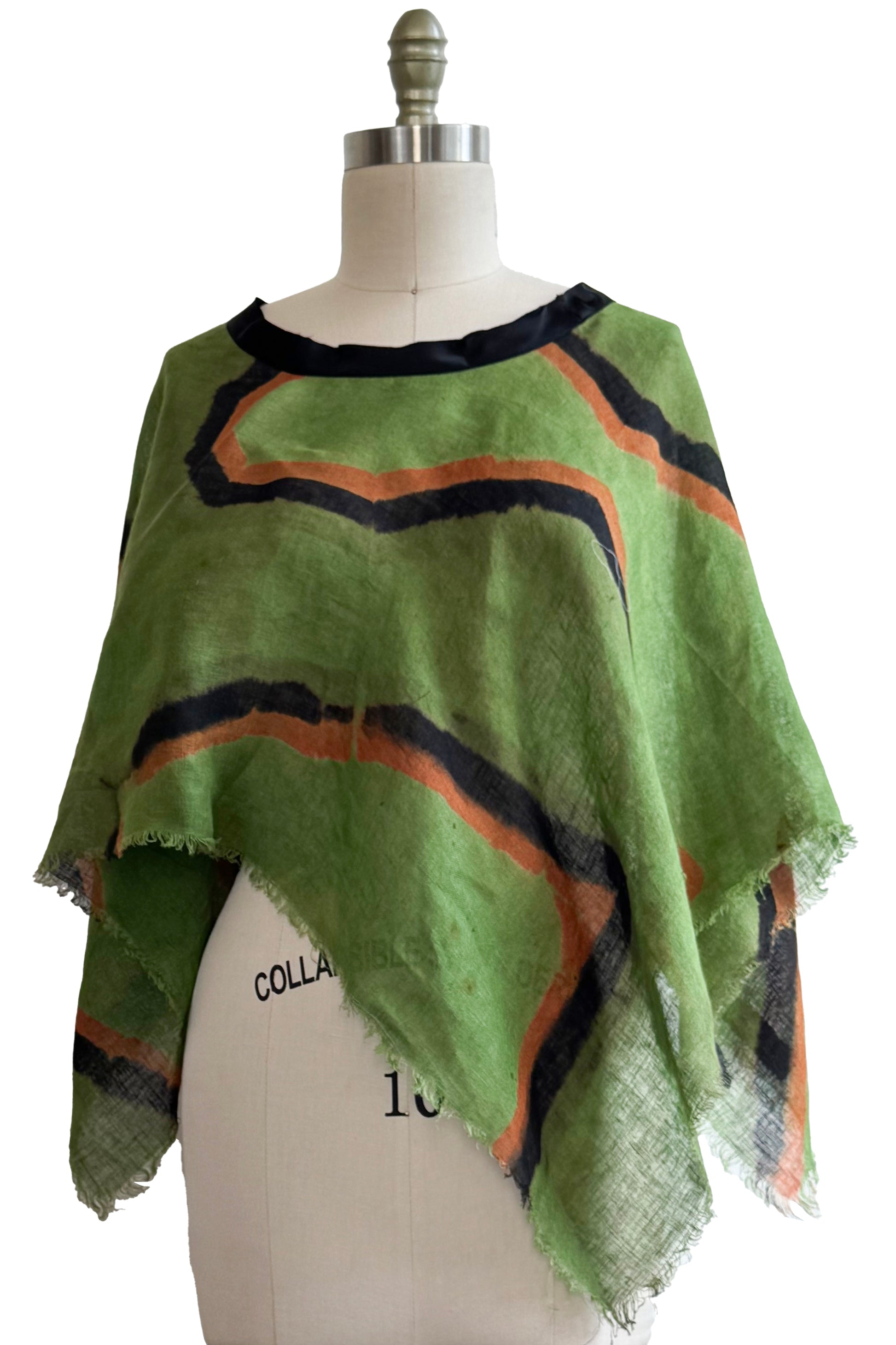 Open Weave Linen Poncho - Itajime Dye - Green, Black & Rust