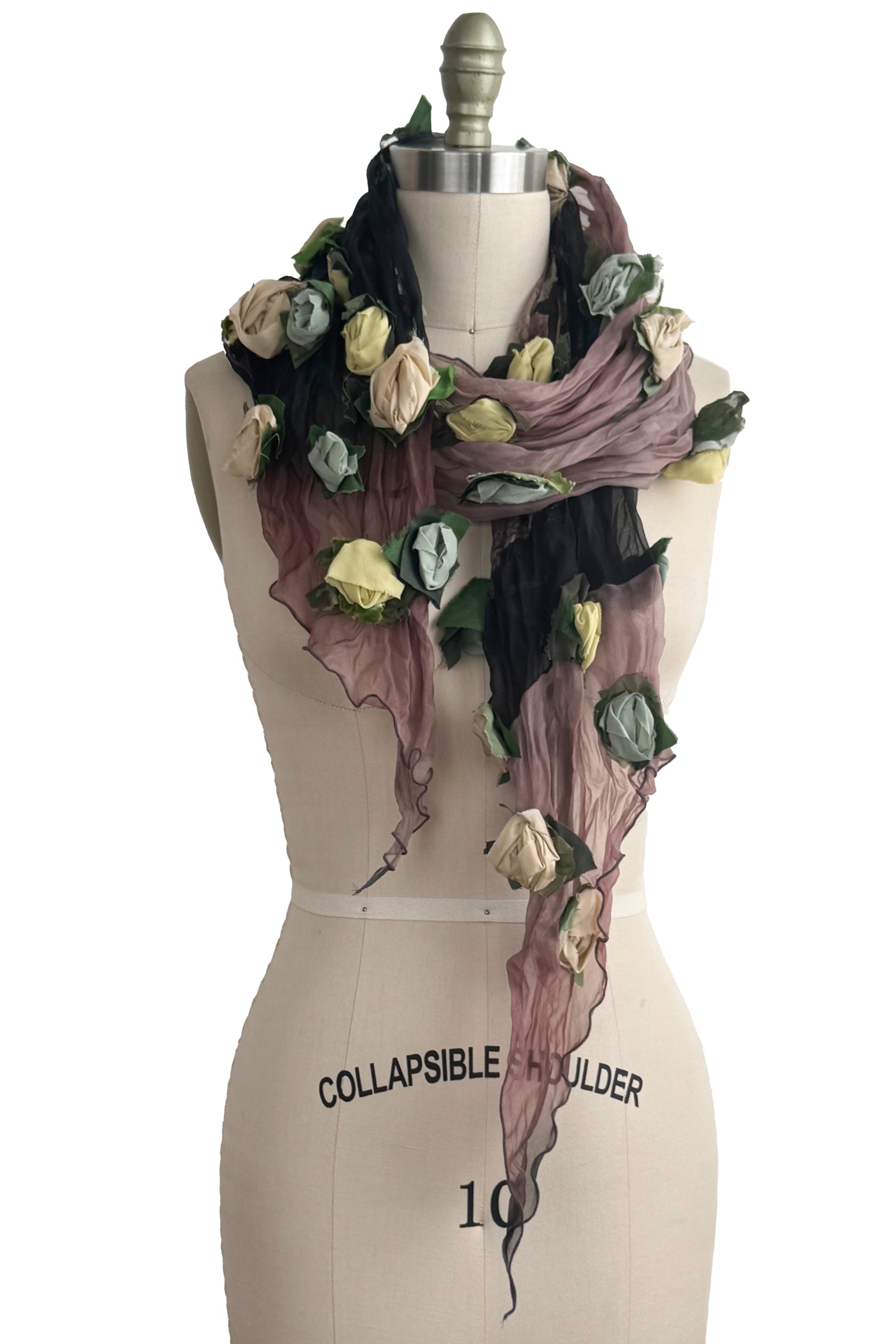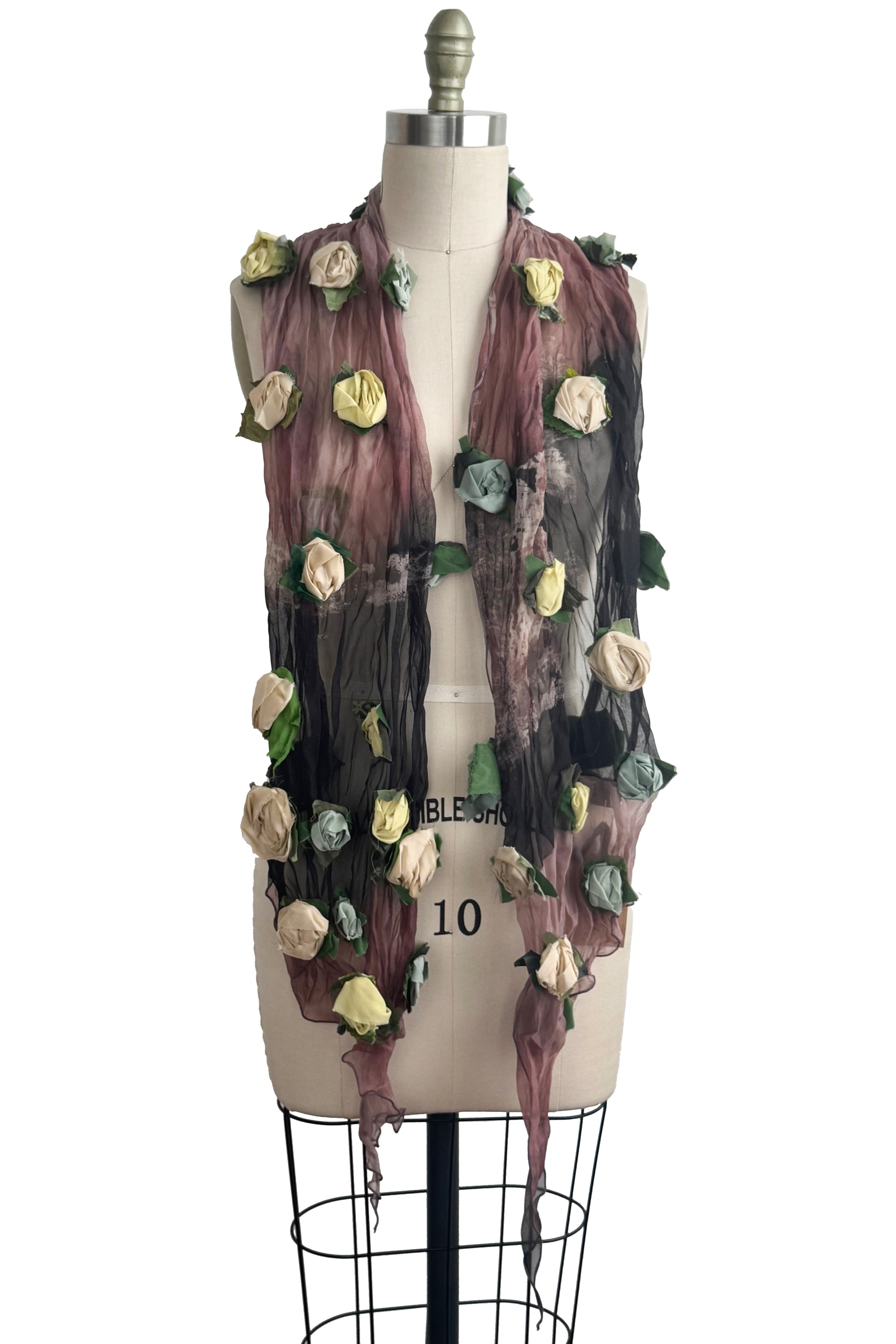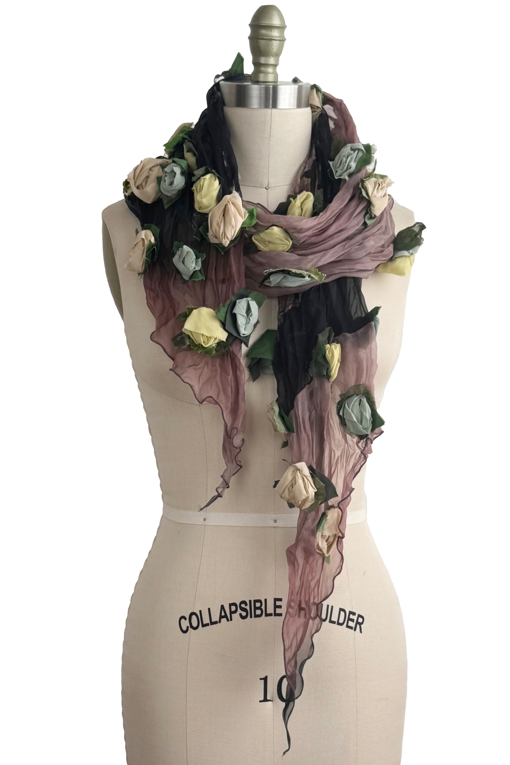 Organza Flower Shawl - Black & Natural w/ White, Green, Yellow