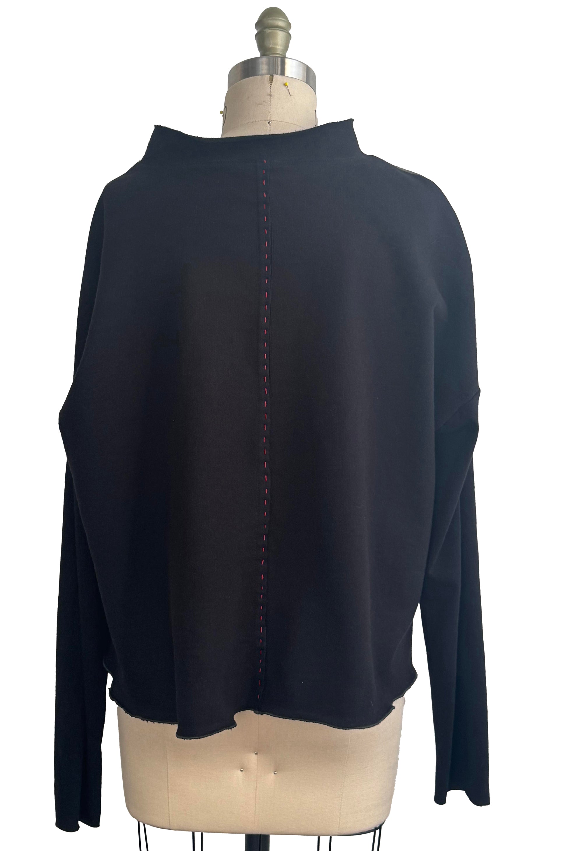 Portia Top | Silk Charmeuse & Organic Cotton Jersey | Hops Vine & Ginkgo Print | Black & Gold | Large