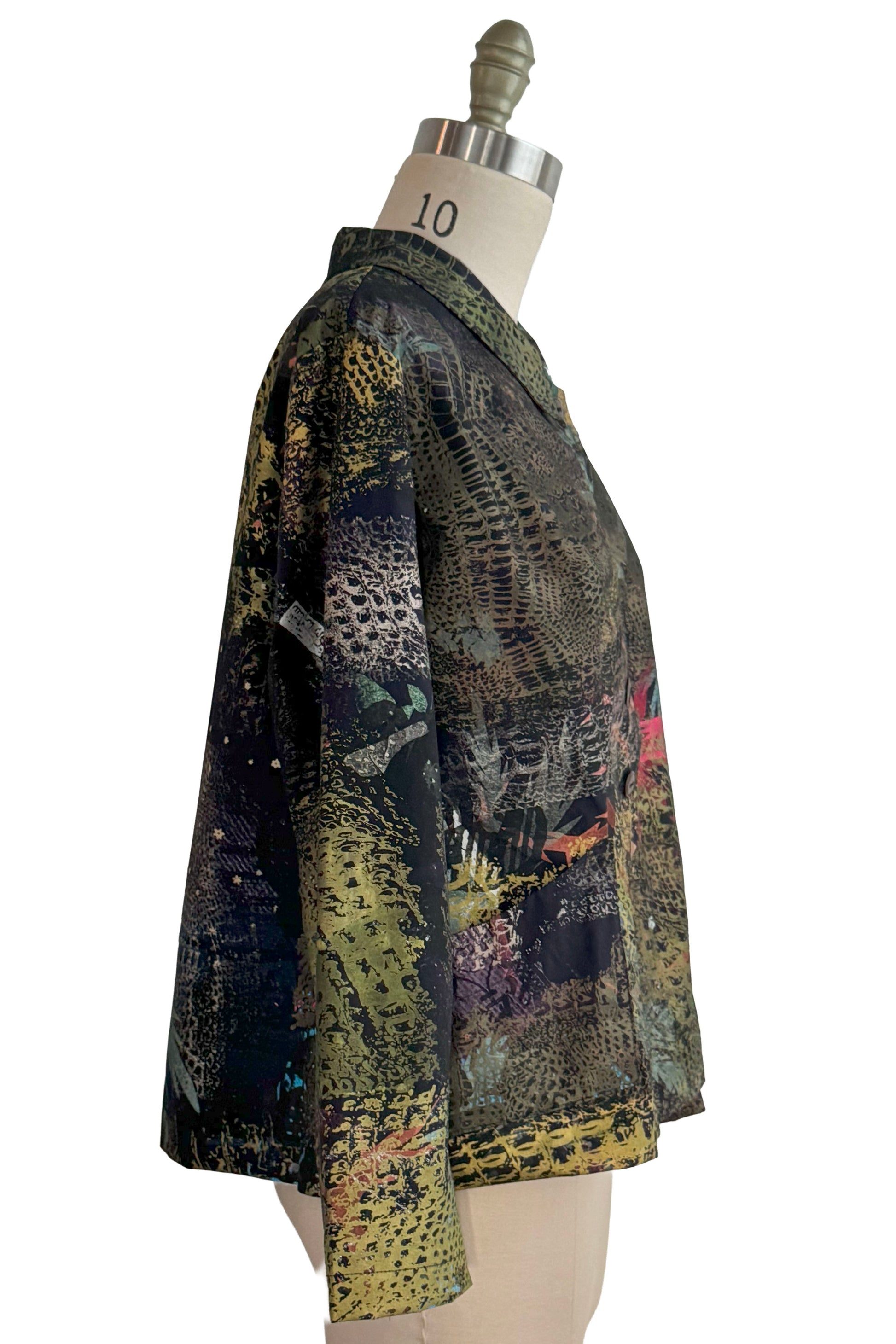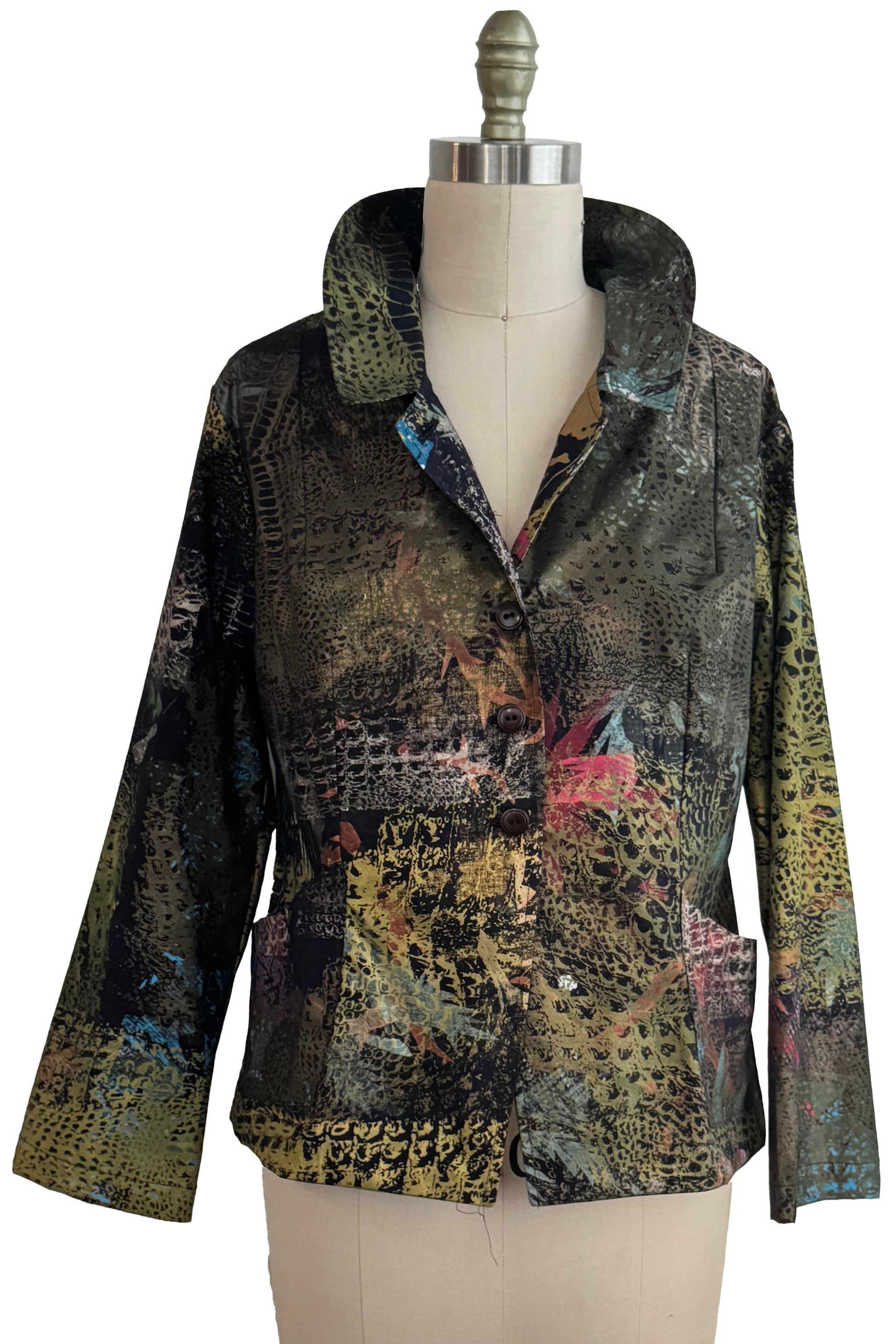 Riding Coat in Cotton w/ Chaos Print - Black - Medium