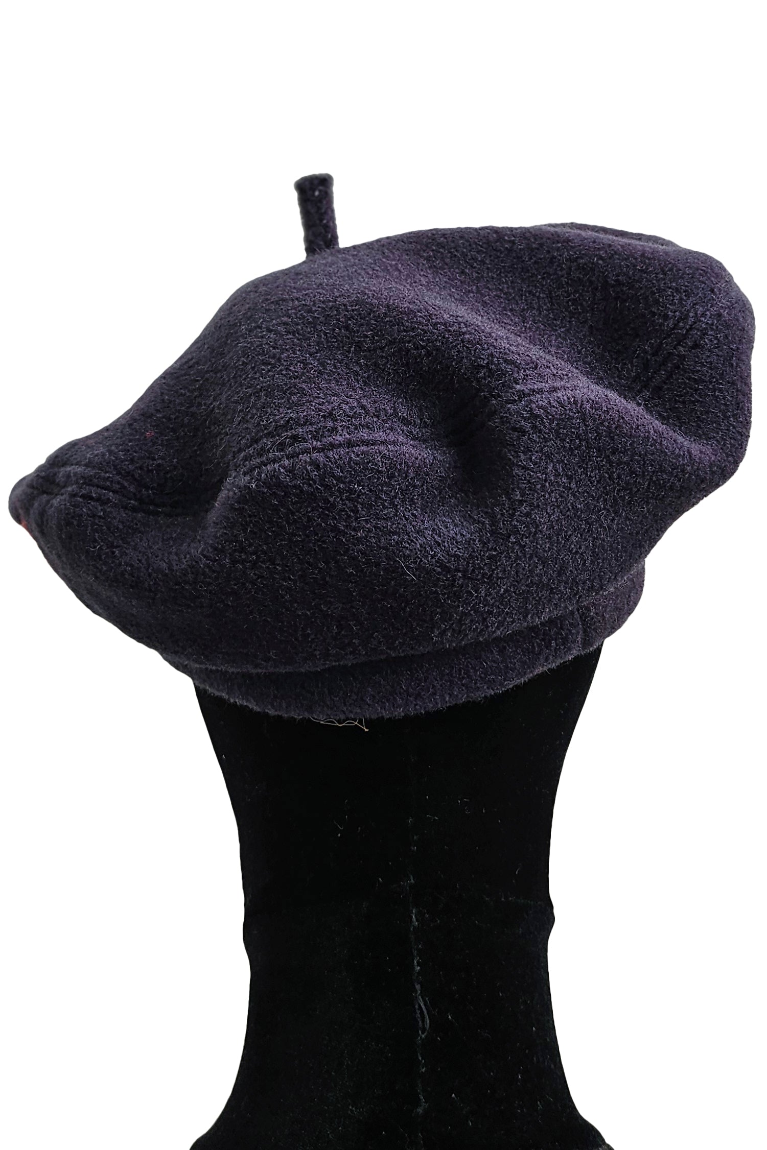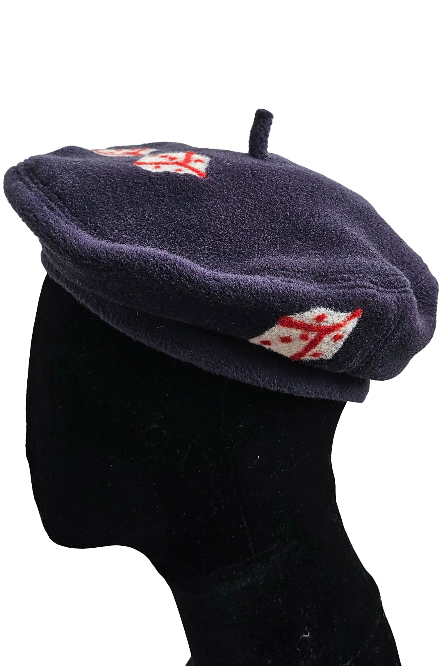Silk Lined Beret Hat w/ Applique - Navy Blue & Double Dice - Medium