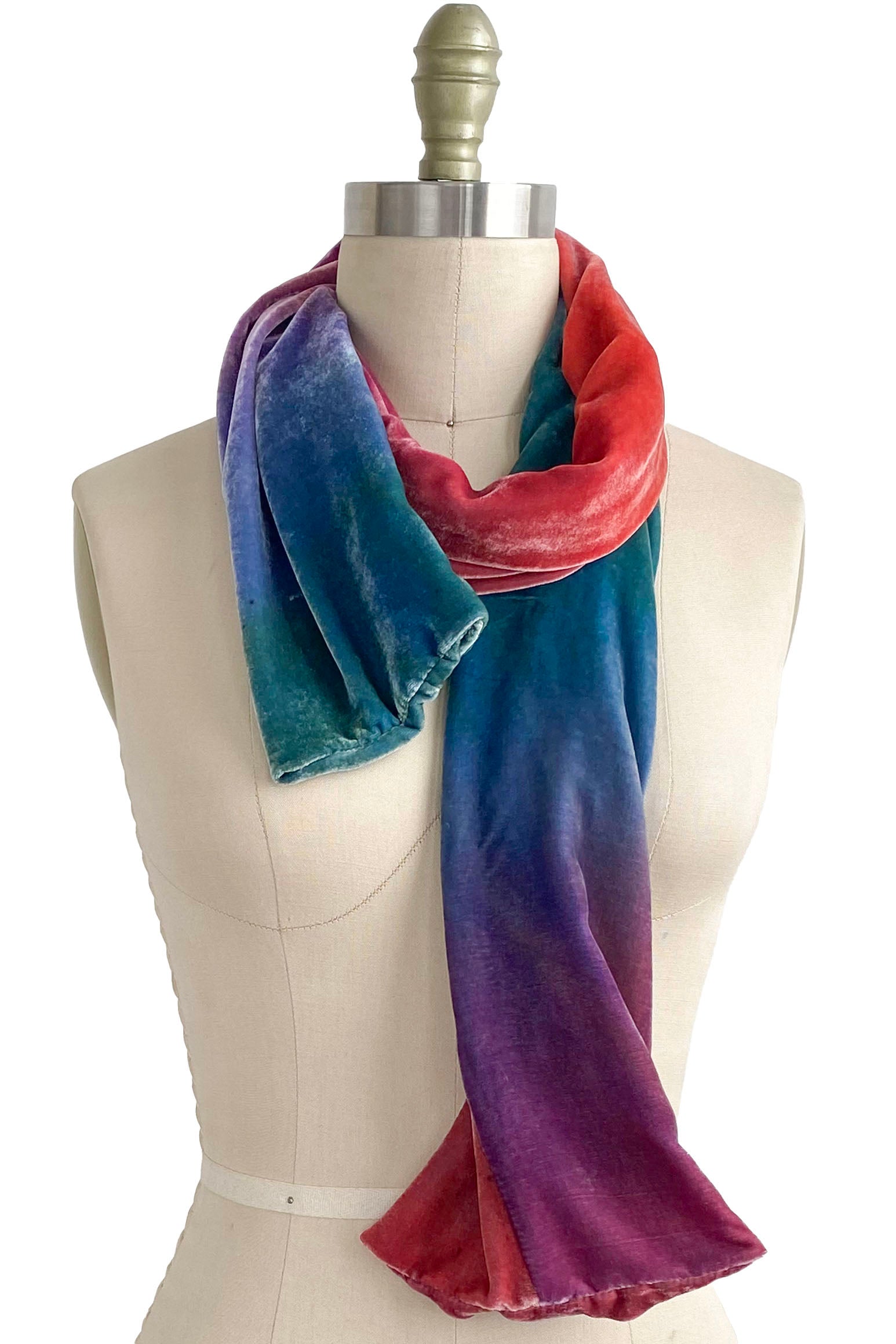 Scarf | Silk Velvet | Ombre Dye | Red, Pink, Purple & Blue