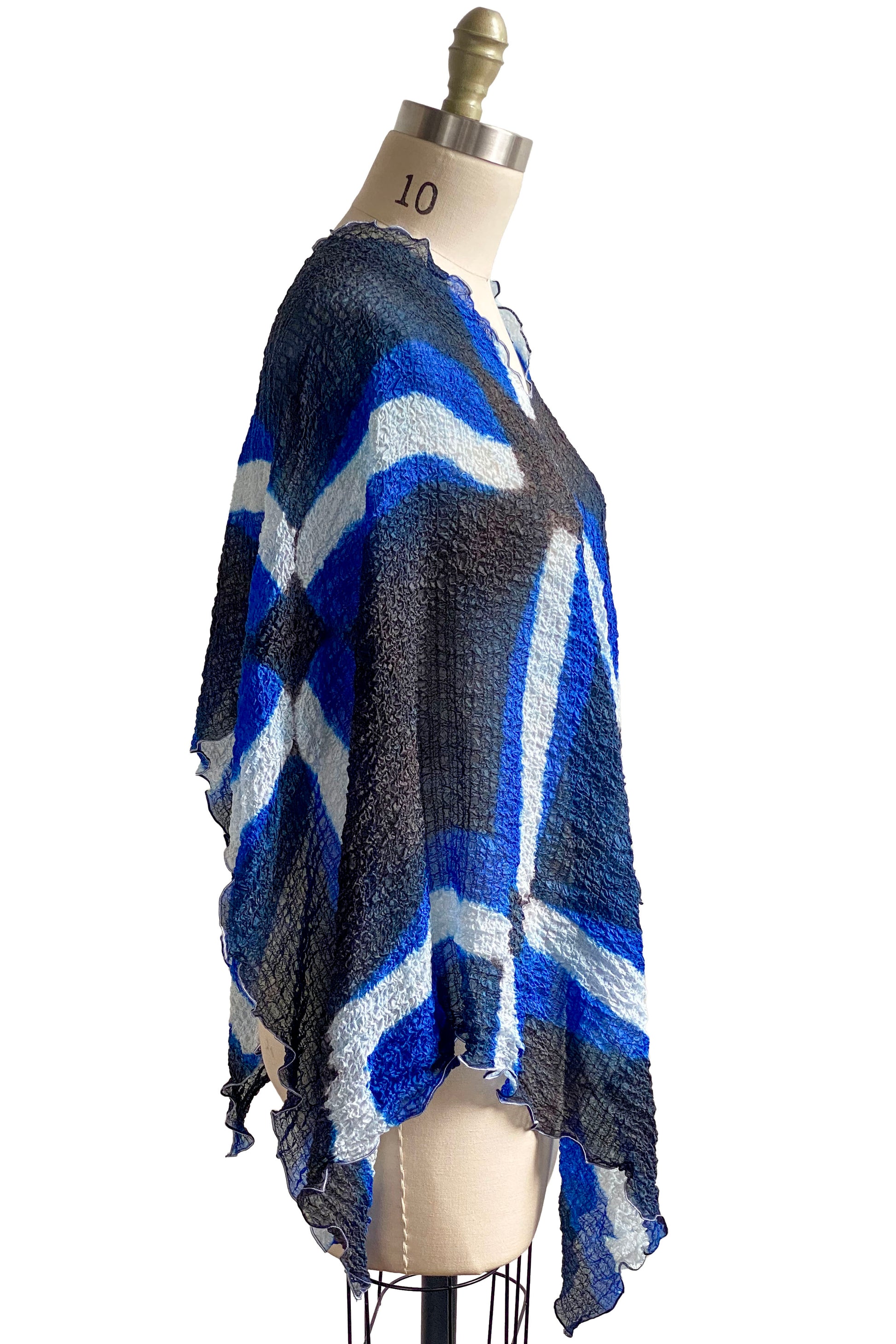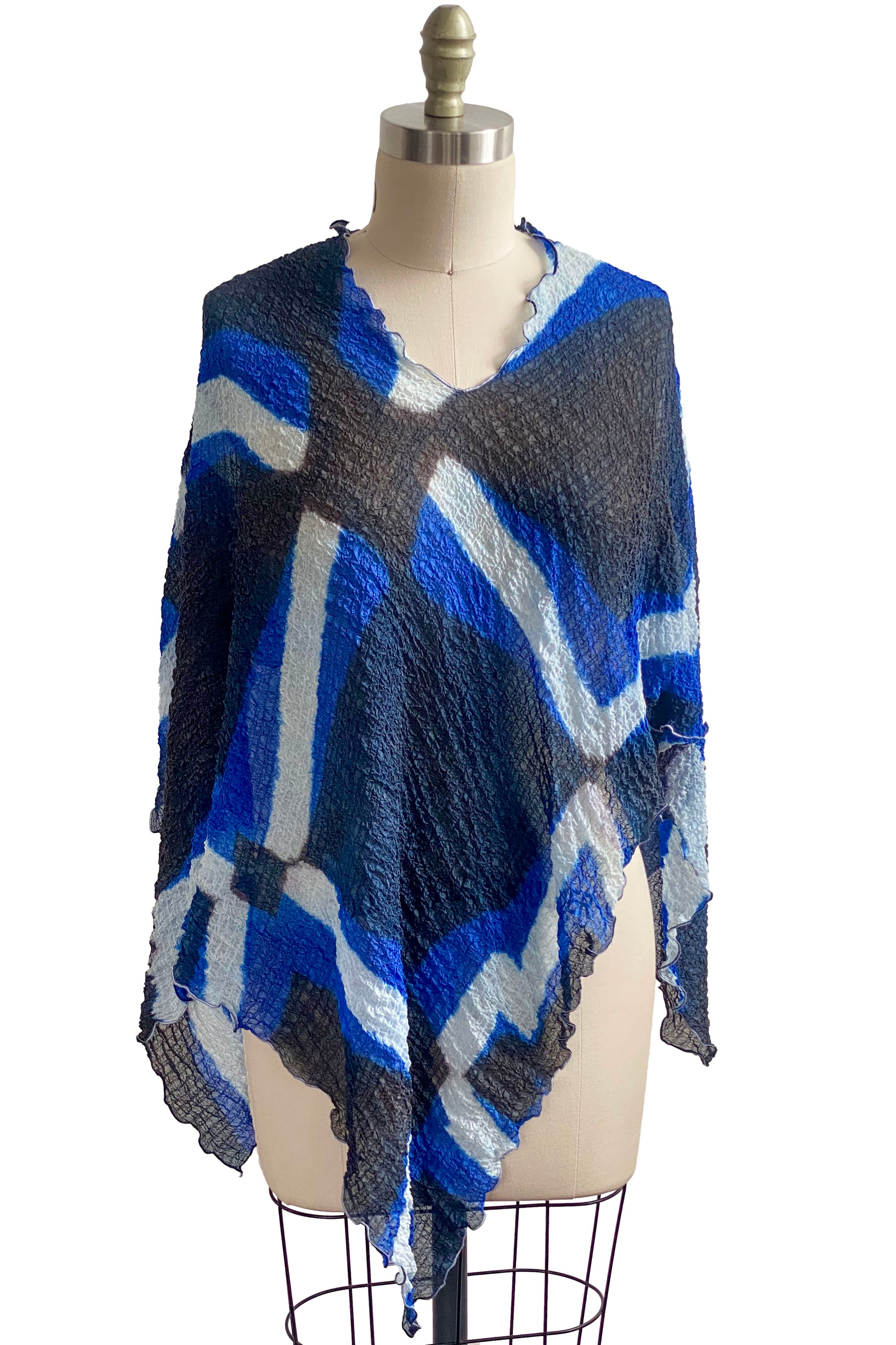 Waffle Silk Poncho w/ Itajime Stick Dye - Blue, Black & White