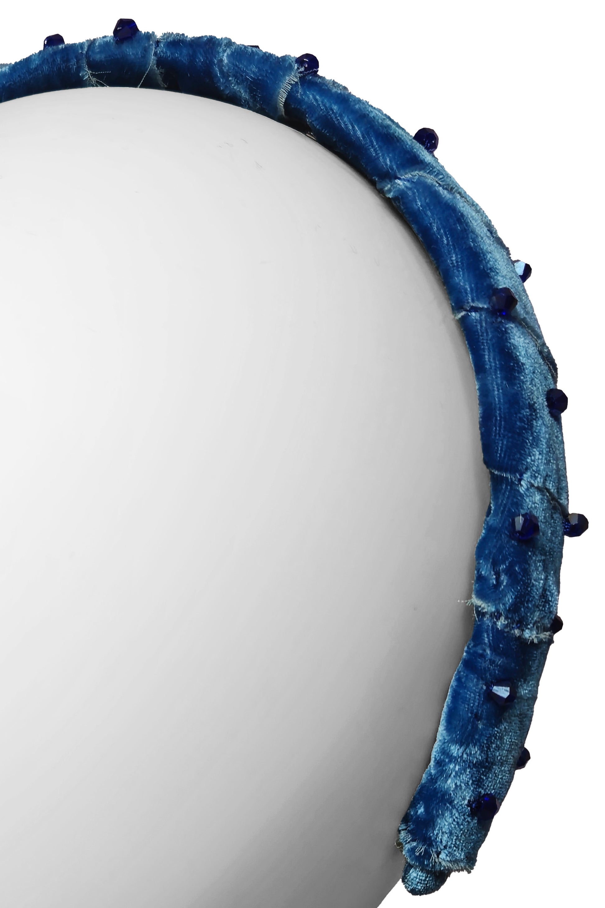 Crafted from upcycled fabric destined for waste, this headband features luxurious silk velvet and stunning glass beads.