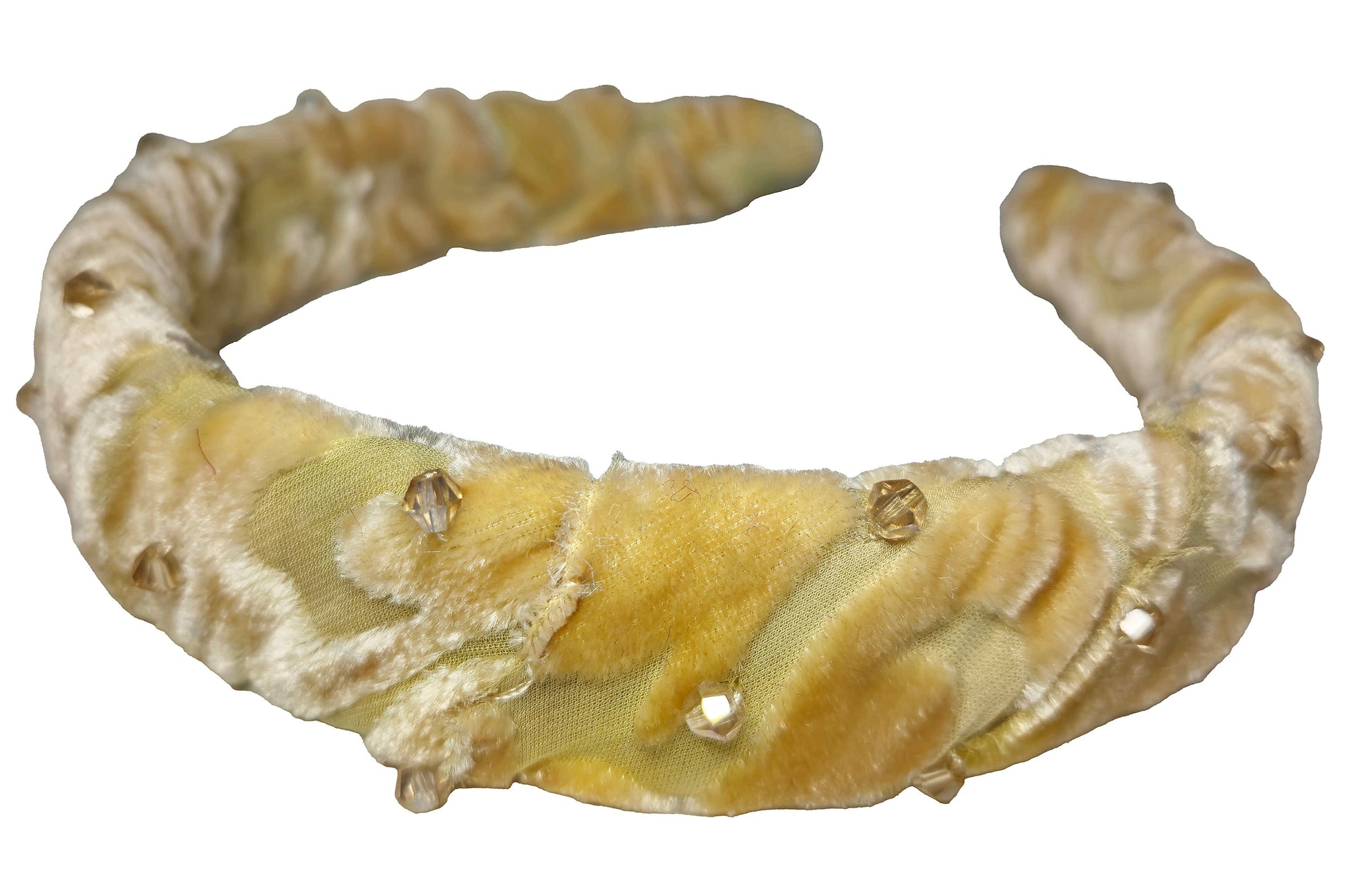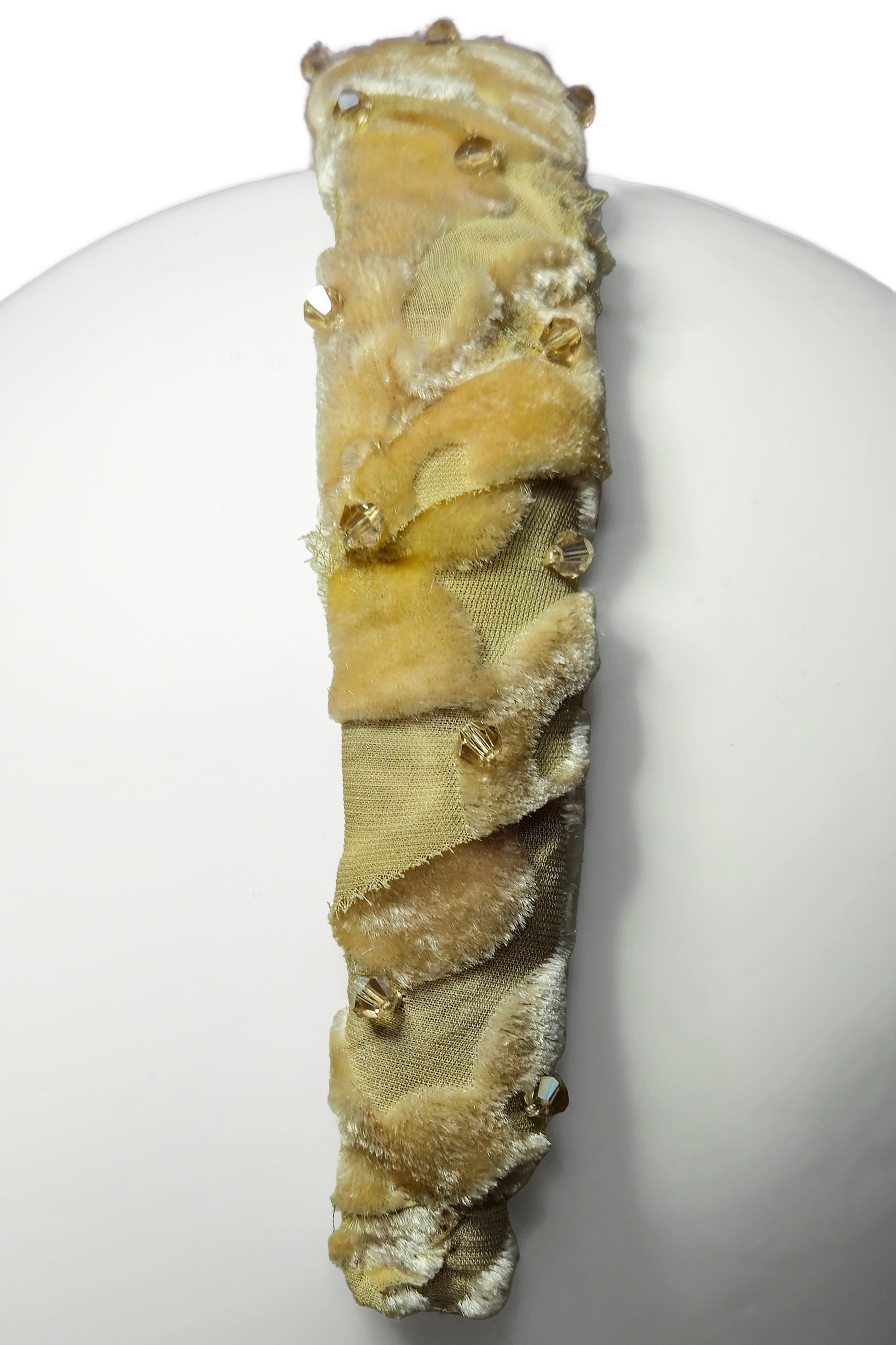 Crafted from upcycled fabric destined for waste, this headband features luxurious silk velvet and stunning glass beads.